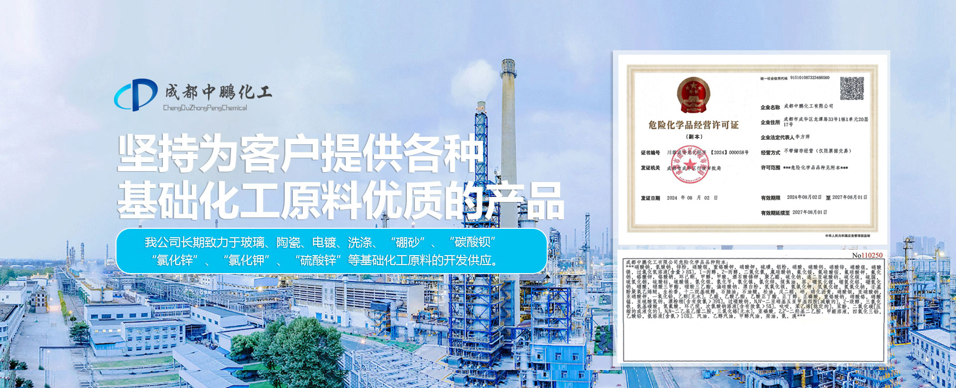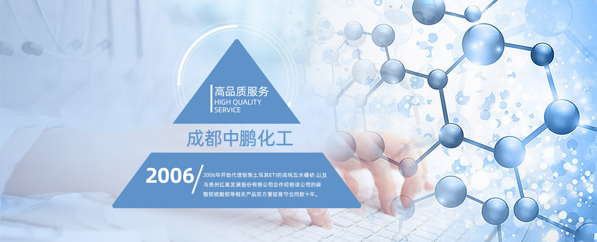 成都中鵬化工有限公司成立于2001年,位于成都市新都區(qū)木蘭木名商塑化城2棟11號,公司成立16年以來,一直堅(jiān)持為客戶提供各種基礎(chǔ)化工原料的產(chǎn)品。我公司長期對于玻璃、陶瓷、電鍍、洗滌、“硼砂”、“碳酸鋇”、“氯化鋅”、“氯化鉀”、“硫酸鋅”等基礎(chǔ)化工原料的開發(fā)供應(yīng)。 公司現(xiàn)在員工上百人,在全國擁有多個(gè)營銷體系和完善的售后服務(wù)體系,長期以來,通過為客戶提供各種基礎(chǔ)化工原料的產(chǎn)品,形成了良好的合作關(guān)系...